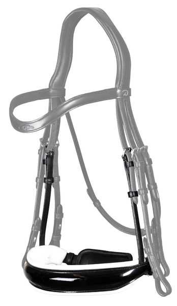 Szeroki lakierowany nachrapnik szwedzki z białym podszyciem Dy'on Dressage - czarny