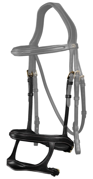 - Podwójny skórzany nachrapnik Dy'on z kolekcji D Collection. Kolekcja D Collection charakteryzuje się kremowymi przeszyciami i mosiężnymi okuciami. Wykonany z wysokiej jakości skóry. Dostępny w dwóch kolorach: brązowym i czarnym.