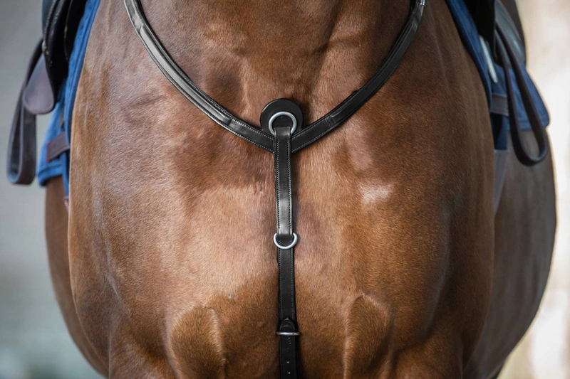 - Skórzany napierśnik Dy'on Breastplate z kolekcji New English. Kolekcja New English charakteryzuje się przeszyciami w kolorze skóry i srebrnymi okuciami. Posiada gumowe wstawki o długości 6 cm. Dostępny w kolorach: brązowym i czarnym.