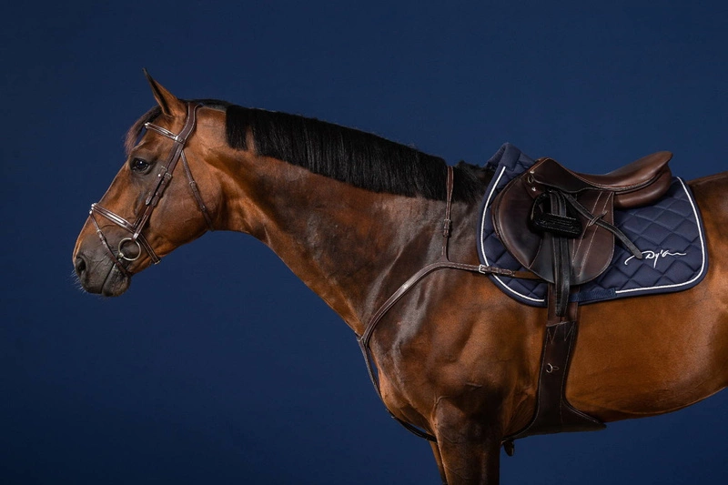- Skórzany napierśnik Dy'on Long Bridge Breastplate z kolekcji US Jumping. Kolekcja US Jumping charakteryzuje się kremowymi przeszyciami i srebrnymi okuciami. Mocowany do przystuł. Dostępny w kolorach: brązowym i czarnym.