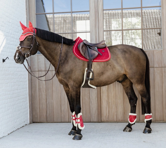 Kentucky Ochraniacze Vegan Sheepskin Young Horse Fetlock Velvet na zadnie nogi - czerwone