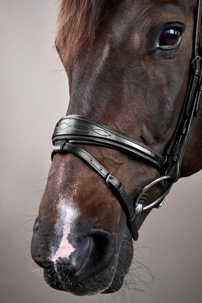 - Anatomiczne ogłowie Dy'on z nachrapnikiem angielskim z kolekcji New English. Kolekcja New English charakteryzuje się przeszyciami w kolorze skóry i srebrnymi okuciami. Posiada gładki prosty naczółek. Dostępne w kolorze czarnym i brązowym.