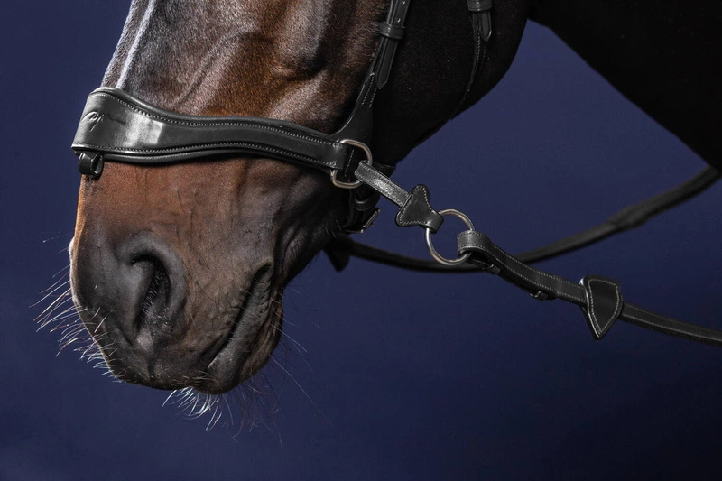 => ogłowie posiada dwie klamry typu D do bezpośredniego podpięcia wodzy oraz dwa paski typu Cross Pull do krzyżowego podpięcia wodzy,