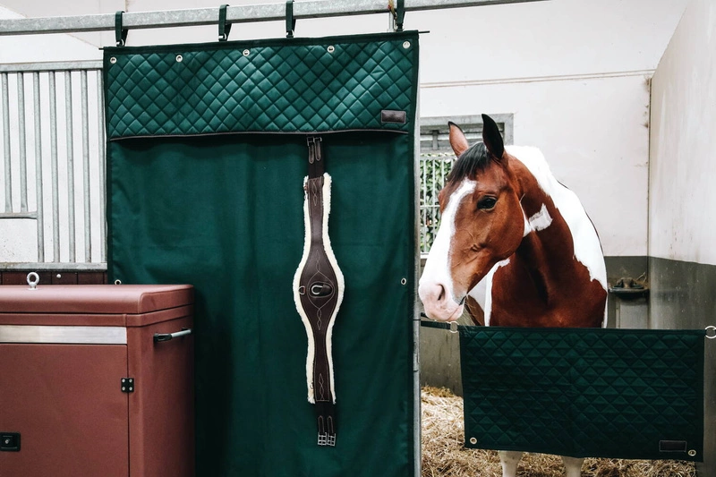 Pod klapą znajduje się pięć praktycznych karabińczyków do mocowania akcesoriów takich jak ogłowia, kantary, wieszak na czapraki lub derki czy hak do czyszczenia sprzętu.