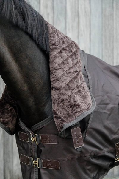 Od wewnątrz podszyty sztucznym króliczym futrem, które jest nie tylko bardzo przyjemne dla konia i gwarantuje maksimum komfortu, zapobiegając obtarciom i wycieraniu grzywy, ale dodatkowo pełni funkcję ocieplenia, ponieważ tworzy maleńkie kieszenie powietrzne, które zatrzymują ciepło ciała konia.