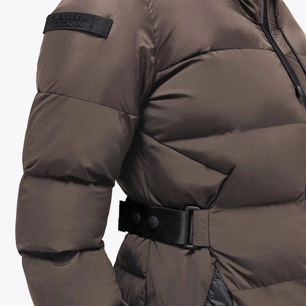 Płaszcz z paskiem Long Hooded Nylon Puffer Cavalleria Toscana - ciemnobeżowy