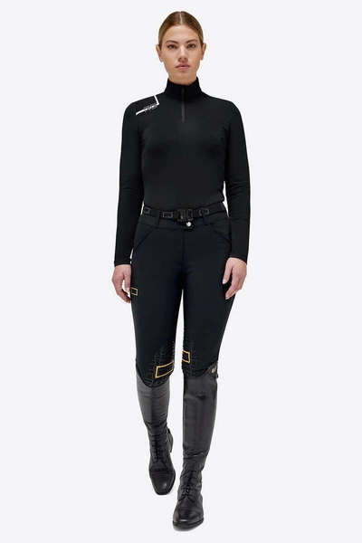 - Damska koszulka treningowa z limitowanej kolekcji Cavalleria Toscana w kolorze czarnym. Wykonana w całości z elastycznego technicznego jerseyu piqué z efektem siateczki.