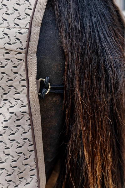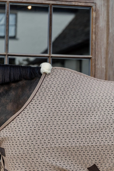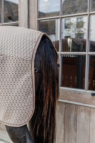 - Idealnie sprawdzi się podczas transportu, do osuszenia konia po treningu lub jako podderka.