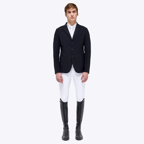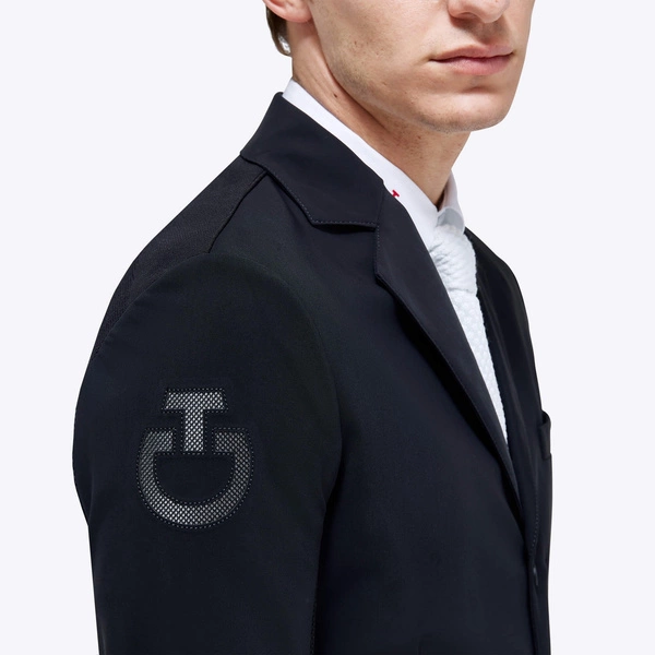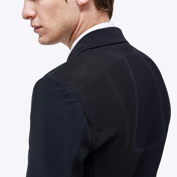 - Frak męski Cavalleria Toscana wykonany z lekkiego, wysoce oddychającego materiału technicznego, idealnego na letnie dni. Jest wodoodporny oraz posiada zabezpieczenia antybakteryjne i UV. Dopasowuje się do ciała, nie powodując ucisku.