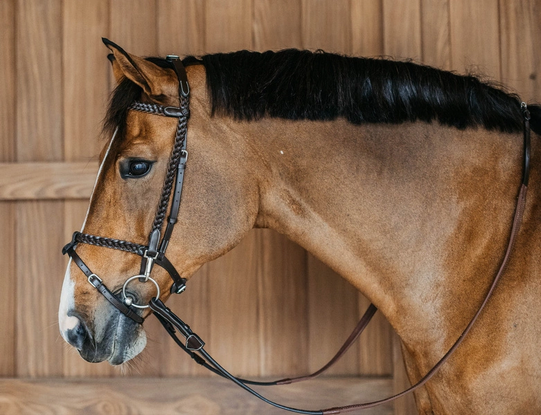 Ogłowie Dy'on Working Plaited z haczykami - brązowe
