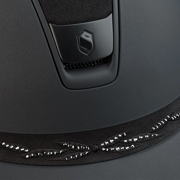 - Niezwykle elegancki, kobiecy a przede wszystkim lekki i bardzo wytrzymały kask Samshield z dużym daszkiem. Klasyczny, z zamszowym topem, opaską "Flower Swarowski" oraz matowymi ramkami w kolorze czarnym. Sprzedawany z wkładką.