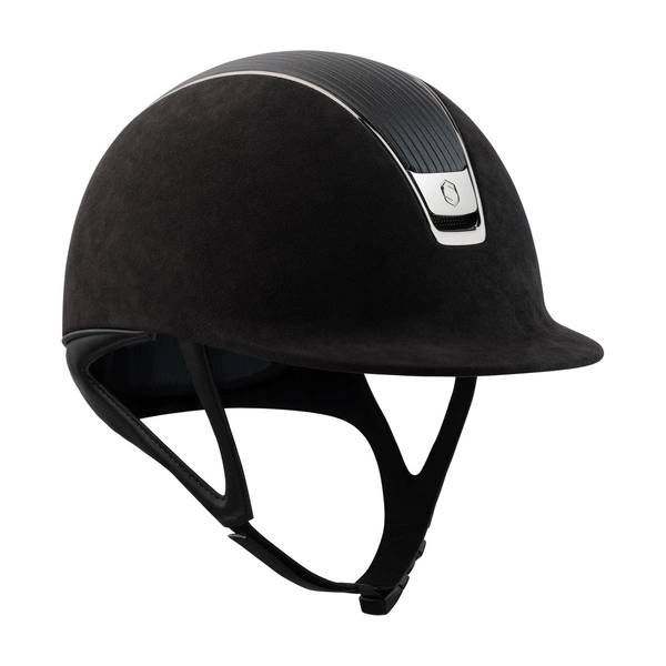 - Niezwykle elegancki, a przede wszystkim lekki i bardzo wytrzymały kask Samshield. Zamszowa skorupa kasku posiada zdobienia w postaci skórzanego topu "Leather Black".