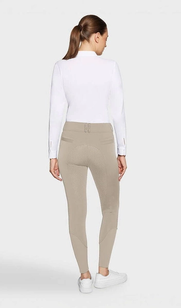 Szeroki pas nie tylko jest bardzo wygodny, ale również modeluje sylwetkę na brzuchu i zapewnia idealne dopasowanie bryczesów w każdych warunkach. Bryczesy mają wysoki stan.