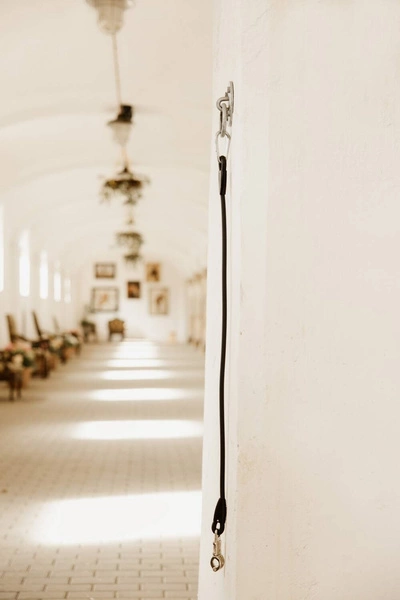 - Bezpieczna linka do stajni lub transportu z bezpiecznym karabińczykiem, wykonana z silikonu. Idealny do stajni, przyczepy dla koni, myjni, solarium i innych miejsc.