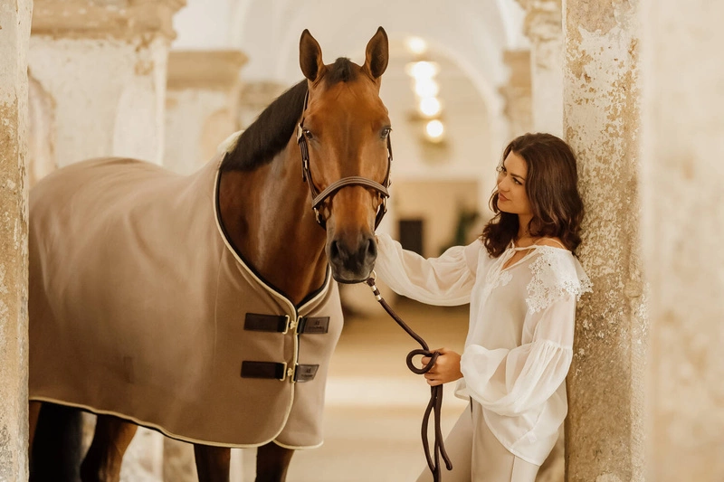 Derka zapewnia doskonałą regulację termiczną, utrzymując konia w cieple, jednocześnie pozwalając na odprowadzanie potu.