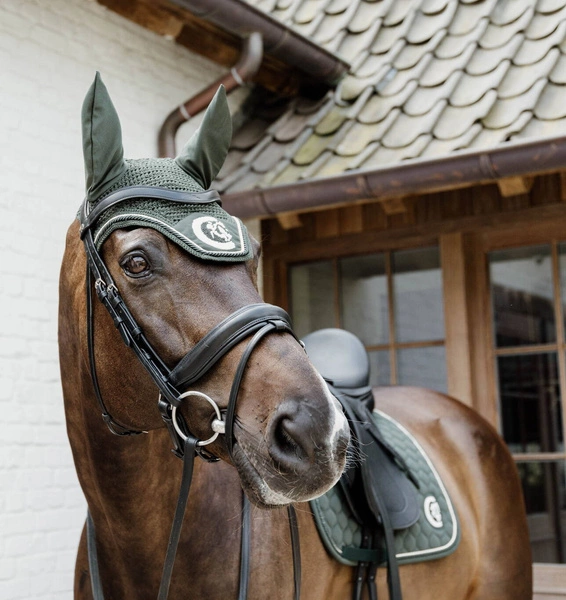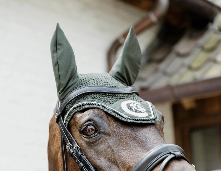 - Nauszniki posiadają elastyczny materiał na uszach, dzięki czemu pasują na większość koni.