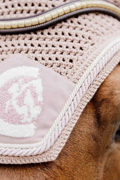 - Nauszniki posiadają elastyczny materiał na uszach, dzięki czemu pasują na większość koni.