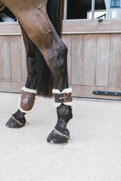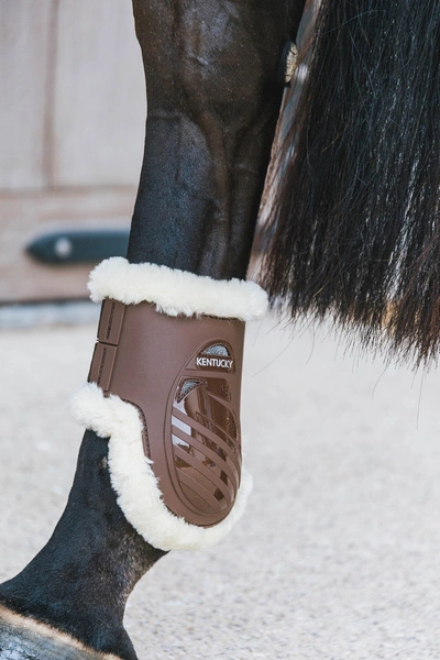 Kentucky ochraniacze Fetlock z futrem na zadnie nogi na kołki - brązowe