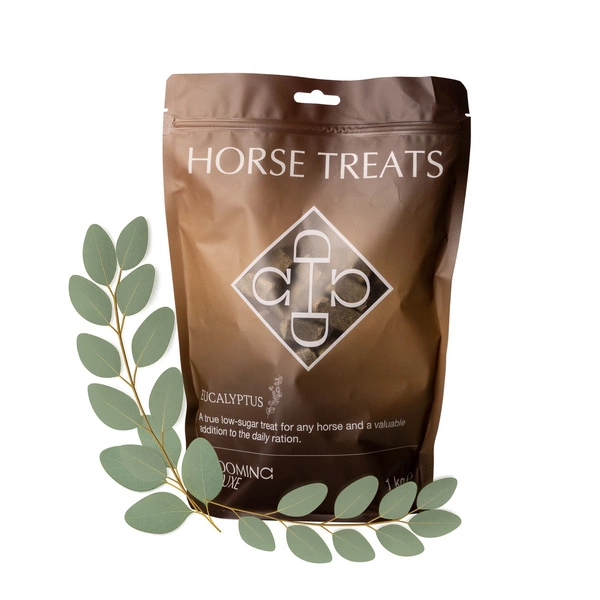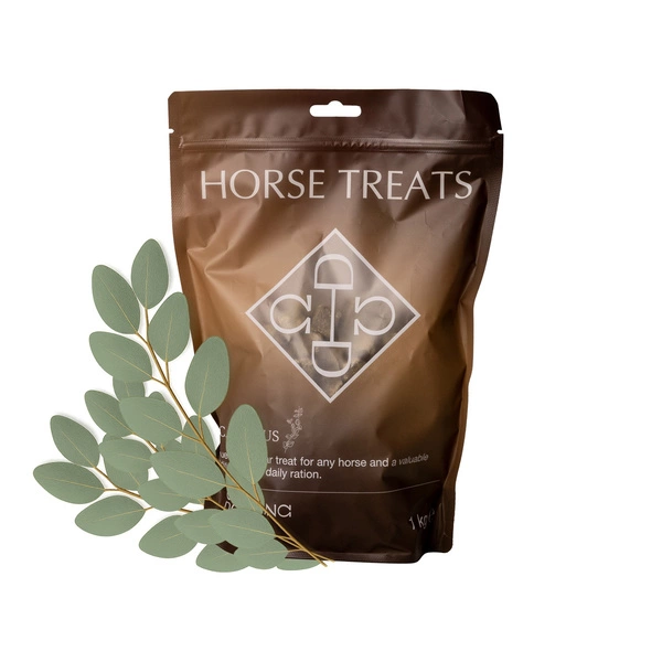 - Całkowicie naturalne przysmaki dla koni o smaku eukaliptusowym.