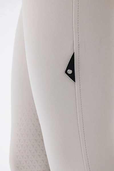 - Klasyczne bryczesy damskie z silikonowym, odpornym na ścieranie, kolanowym lejem typu X-Grip pochodzące z regularnej kolekcji Equiline Competition.