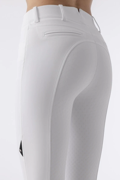 Damskie bryczesy Equiline Adellek z wysokim stanem z pełnym lejem X-Grip - białe