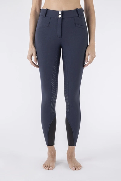 Bryczesy z wysokim stanem Equiline Arlette z pełnym lejem X-Grip - granatowe