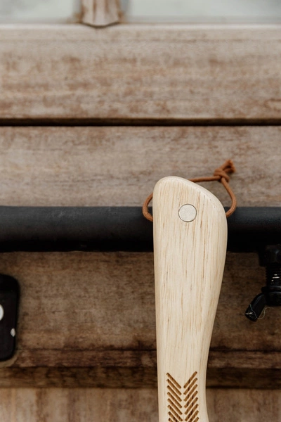• Wykonana z lakierowanego drewna kauczukowego z metalowym włosiem.