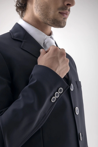 - Świetnie skrojony frak wykonany z elastycznego, odpornego na zagniecenia i bród materiału technicznego