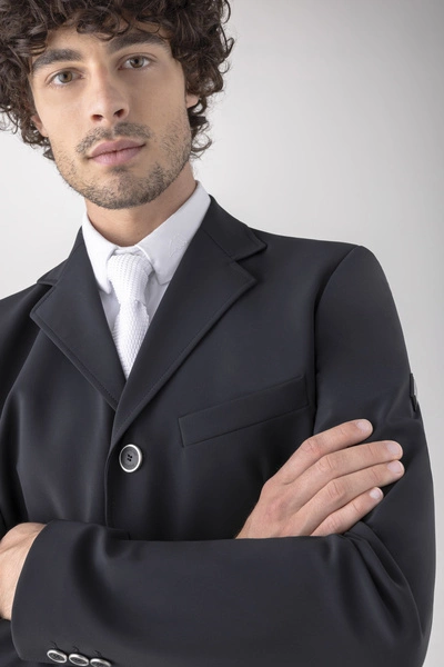 - Świetnie skrojony frak wykonany z elastycznego, odpornego na zagniecenia i bród materiału technicznego