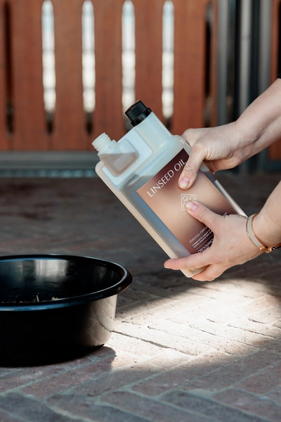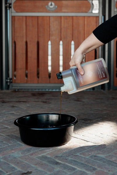 Podawać 15-30 ml dziennie, dostosowując dawkę do wielkości konia. Aby ułatwić odmierzanie, butelka zawiera niewielki pojemnik z oznaczeniami umożliwiającymi dokładną kontrolę porcji.Forma: olej