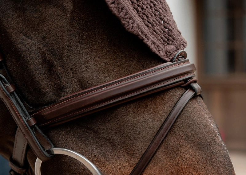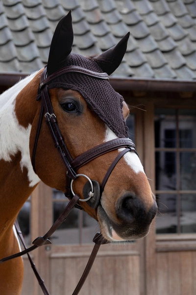 Materiał wokół uszu jest elastyczny, wygodny dla konia. Bardzo łatwo dopasowuje się i dobrze układa w każdej sytuacji.