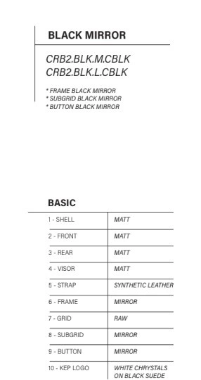 - To podstawowy kask firmy KEP Italia, ze standardowym daszkiem o matowym wykończeniu, z czarną lustrzaną ramką, subgridem i napisem KEP wykonanym z kryształków. Możliwość personalizacji.