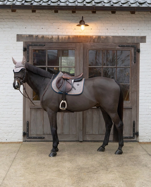 Instrukcja pielęgnacji: czaprak można prać w pralce w temperaturze nie wyższej niż 30 °C. Nie należy go suszyć w suszarce bębnowej ani prasować.