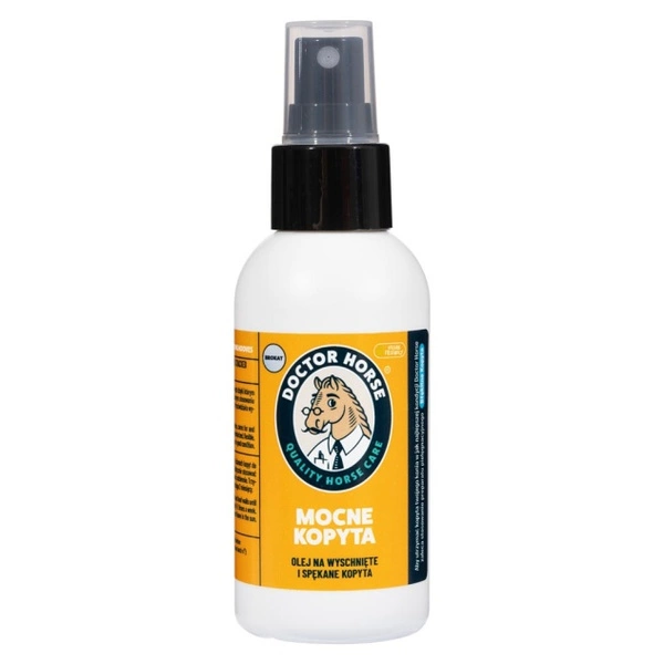 Olej do kopyt Mocne Kopyta to starannie dobrana mieszanka olejów roślinnych dzięki którym odżywia, pielęgnuje i wzmacnia róg kopytowy Twojego Konia. Przy regularnym stosowaniu kopyta stają się odpowiednio nawilżone, elastyczne, mocne i błyszczące. Przeciwdziała wysychaniu i pękaniu kopyt utrzymując je w dobrym stanie.