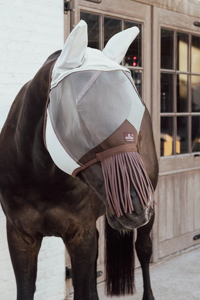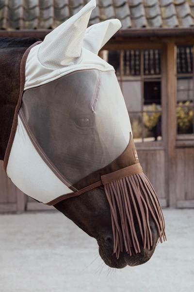 Wszystkie miejsca styku maski z końską skórą są miękko podszyte. Tak, aby zapewnić komfort nawet podczas całodziennego noszenia.