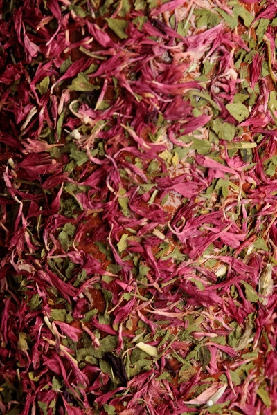 - Fioletowy element zawiera czerwony chaber, ceniony za właściwości wspomagające trawienie, relaksujące i silne właściwości antyoksydacyjne.