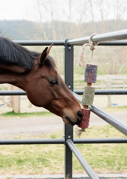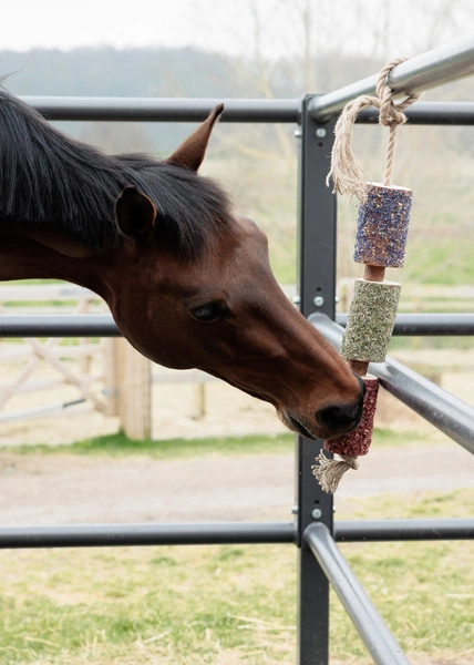 Kiedy Twój koń eksploruje i żuje, ta kolorowa i pachnąca mieszanka pobudza ciekawość i sprzyja uwalnianiu endorfin – oferując zarówno wzbogacenie sensoryczne, jak i dobre samopoczucie. Idealna dla koni, które spędzają czas w stajni lub po prostu lubią odrobinę dodatkowej radości w ciągu dnia.