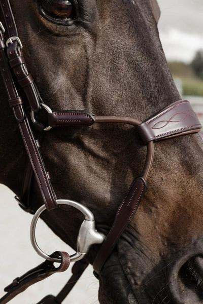 Każdy szczegół tego ogłowia został zaprojektowany z myślą o komforcie konia i efektywności jeźdźca. Hybrydowy nachrapnik z elastyczną wkładką chroni nerwy twarzowe, zapewniając stabilność, a jednocześnie zapobiegając niepotrzebnemu uciskowi lub uciskowi. Nagłówek w kształcie litery S pozwala na naturalny ruch uszu, redukując napięcie i sprzyjając swobodnemu, chętnemu kontaktowi. W połączeniu z wysokiej jakości skórą i fachowym wykonaniem, to ogłowie jest niezbędne dla jeźdźców poszukujących wydajności, komfortu i elastyczności.