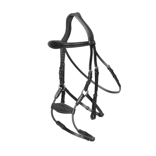 Każdy szczegół tego ogłowia został zaprojektowany z myślą o komforcie konia i efektywności jeźdźca. Hybrydowy nachrapnik z elastyczną wkładką chroni nerwy twarzowe, zapewniając stabilność, a jednocześnie zapobiegając niepotrzebnemu uciskowi lub uciskowi. Nagłówek w kształcie litery S pozwala na naturalny ruch uszu, redukując napięcie i sprzyjając swobodnemu, chętnemu kontaktowi. W połączeniu z wysokiej jakości skórą i fachowym wykonaniem, to ogłowie jest niezbędne dla jeźdźców poszukujących wydajności, komfortu i elastyczności.