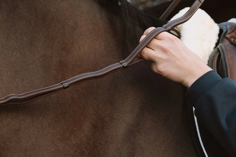 Skórzane wodze oferują jeźdźcom precyzję i niezawodność jak nigdy dotąd. Cztery punkty uchwytu po każdej stronie pozwalają na bezproblemowe utrzymanie stałej długości wodzy przez cały czas jazdy. Ich właściwości antypoślizgowe sprawiają, że idealnie nadają się na deszczową pogodę lub gdy wodze są śliskie od potu końskiego, zapewniając pewny chwyt w każdych warunkach. Wykonane z miękkiej, elastycznej skóry, zostały zaprojektowane z myślą o komforcie i trwałości, zapewniając przyjemną jazdę nawet podczas długich treningów. Stanowią idealne połączenie funkcjonalności i elegancji, odpowiednie dla jeźdźców na każdym poziomie zaawansowania.