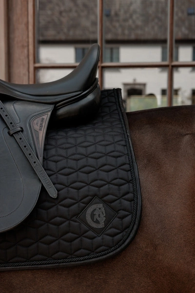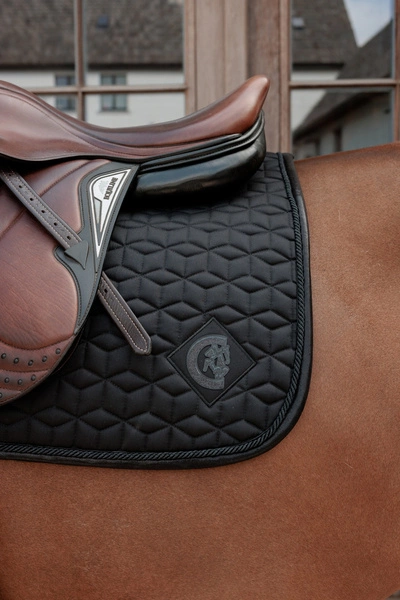 - Czaprak Sparkling wyróżnia się eleganckim sznureczkiem w kolorze czapraka oraz przyciągającą wzrok błyszczącą lamówką.
