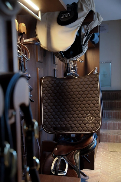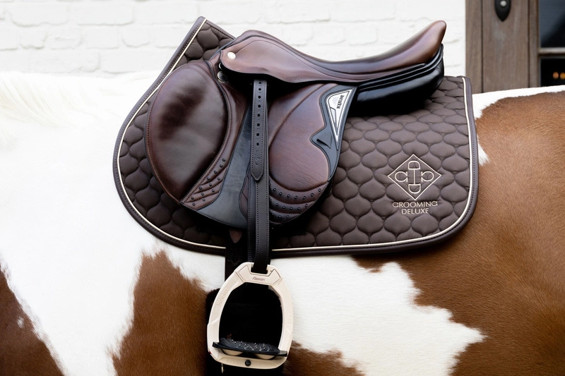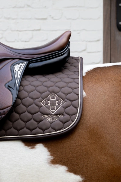 - Czaprak Grooming Deluxe wyróżnia się eleganckim pikowaniem w kształcie cebuli i wyrazistą, przyciągającą wzrok skórzaną lamówką.