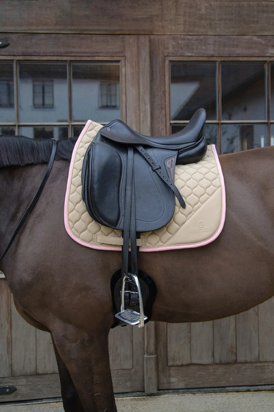 Instrukcja pielęgnacji: czaprak można prać w pralce w temperaturze nie wyższej niż 30 °C. Nie należy go suszyć w suszarce bębnowej ani prasować.