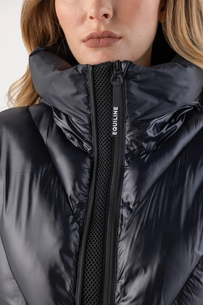 Kurtka ma taliowany, wygodny krój oraz oddychające, lekkie wypełnienie.