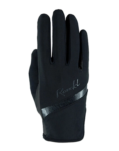 - Rękawiczki ozdobione dyskretnie błyszczącym logo i paskiem na grzbiecie dłoni. Wykonane z ultra elastycznego i oddychającego materiału Roeck-Grip. Zapewniają doskonałą przyczepność. Rękawiczka dopasowuje się do dłoni, co zapewnia idealne wyczucie wodzy.