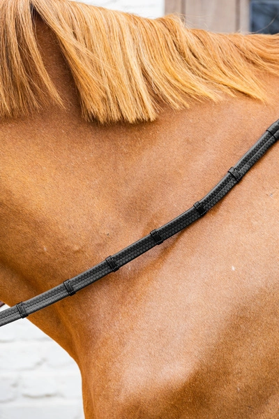 System karabińczyków pozwala na zmianę wędzidła w kilka sekund — bez konieczności żonglowania klasycznymi haczykami. Niezależnie od tego, czy jeździsz na kilku koniach, czy zmieniasz wędzidła podczas treningu, te wodze pomogą Ci utrzymać wydajność.