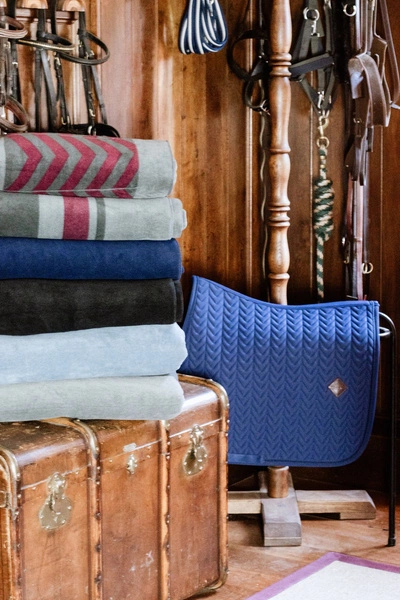 Derka Heavy Fleece Rug Square Stripes wykonana jest z 100% wełny poliestrowej.