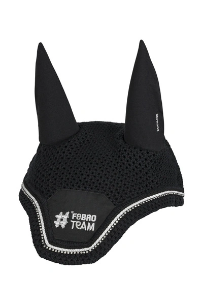 Nauszniki tworzą idealny komplet z efektownym czaprakiem #FebroTeam by Equiline, który ozdobiony jest identycznymi dodatkami: biało-srebrnym haftem z dwóch stron, kontrastowym sznureczkiem i rzędem błyszczących kamieni.