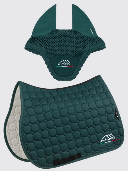 Komplet czaprak + nauszniki Equiline EQflaggy - ciemna zieleń