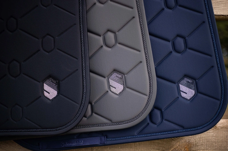Czaprak jest poszerzony wzdłuż linii grzbietowej. Jest tam również laserowo wycięte logo Samshield nadając czaprakowi bardzo ekskluzywnego wyglądu.